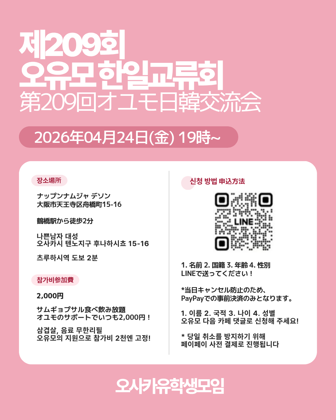또한, 오유모 한일교류회는 PayPay 사전결제 100% 진행으로 진행하고 있습니다.