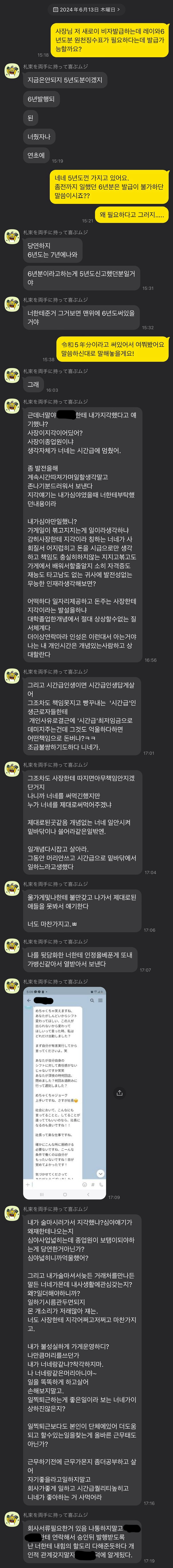 하지만 신경쓸게 늘어났다며 분노한 사장은 비아냥거리며 계속 메시지를 보내었고 거기에 지치고 기분상한 제 친구는 싸움으로 발전해 관두게 된 것입니다.