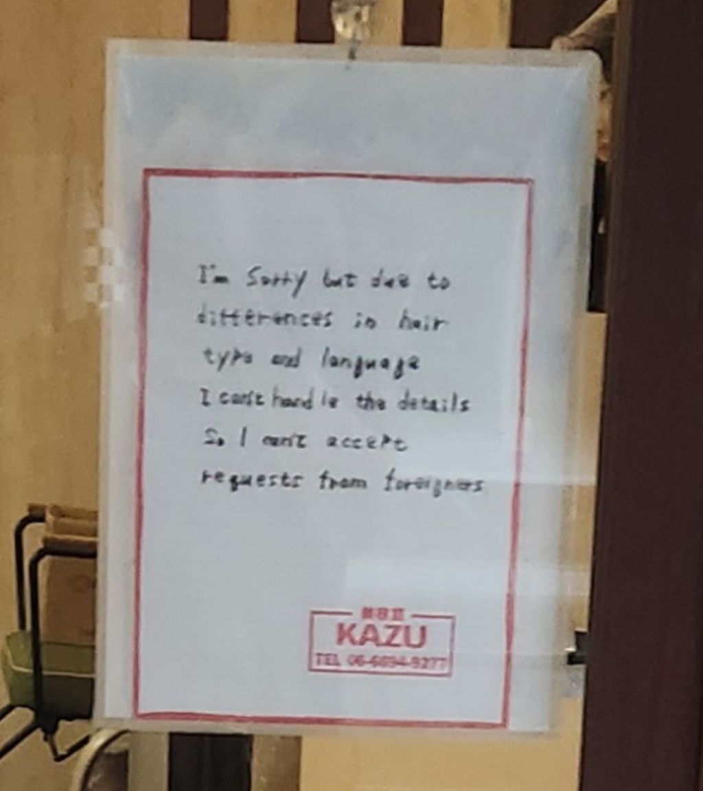 여기는 전에도 1번 가본 적이 있고 예약 필요 없는 곳인거 알고 있어서 마침 안을 보니 대기하는 사람도 없길래 들어가서 커트 하고 싶다고 하니 한 20분 기다려야 한다길래 괜찮다고 하니 이름하고 전화번호를 남겨달라고 하더라구요. 그래서 이름하고 전화번호를 썼는데 써진 이름을 보자마자 곤란한 얼굴하면서 갑자기 외국인은 일본어가 안통해서 트러블 생긴다고 안받는다는거에요. 가게 앞에도 써붙여놨다고.