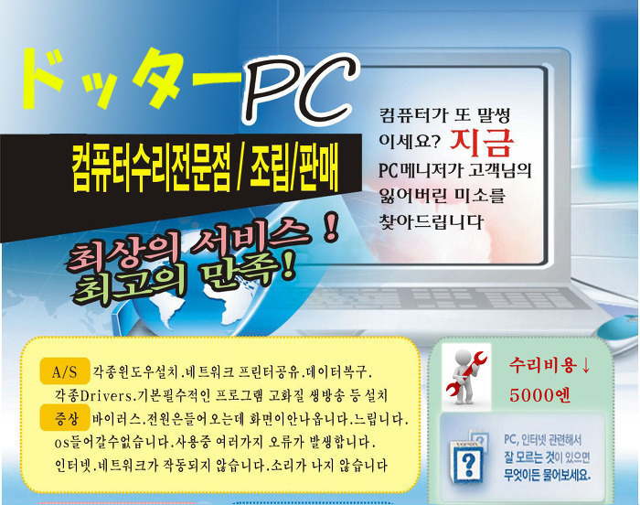 노트북. 데스크탑.원하시는 성능을 맞춰드립니다 XP포맷+드라이버 설치시간 총2시간반정도걸립니다