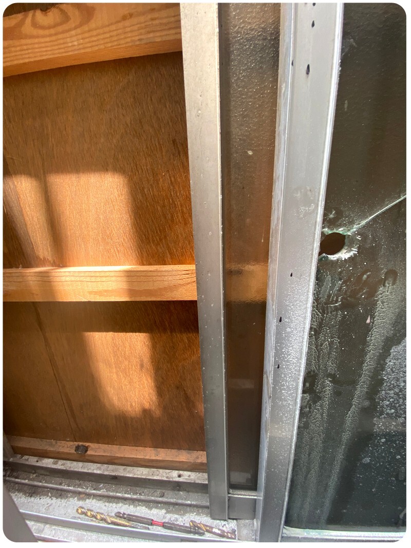 아... 망했어요... 홀리 쉩!!! 시작부터가 완전 난관 입니다. 창문이 안쪽에서 잠그고 그다음 벽을 만든다고 판자로 붙여 버린 겁니다. 일단 의뢰자분께 말씀 드리고 깨도 된다고 허락은 받았습니다만... 그래도 이거 깨기가 그렇더라구요. 그렇다고 유리에 구멍을 뚫는 장비는 상당히 비쌉니다. 게다가 가지고 있지도 않고요... 그래서....