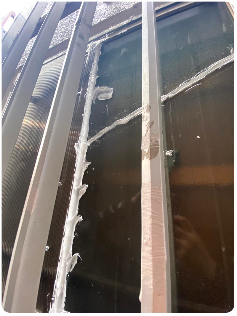 나머지는 실리콘으로 막아 줍니다. 실리콘으로 막으면 창문이 움직이지도 못하고 방수효과도 기대할 수 있습니다. 그리고 아까 구멍내면서 금간거... 그냥 실리콘 발라 줍니다. 그리고 그위애 테이프를 쫙 붙여 줍니다.