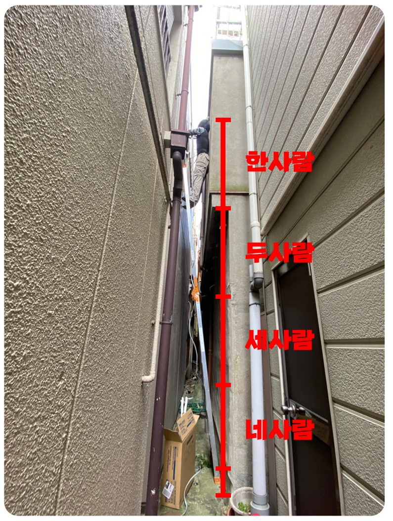 저 정도 입니다. 사람 4명높이 보다 조금더 깁니다. 저기에 올라가서 작업을 해야 하는... 와이프 앞에서는 강한척 잘난척온갖 척척척은 다 했는데 올라가보니 진짜 후덜덜 하더라구요 사다리가 뒤로는 넘어질 걱정은 안하는데... 옆으로 넘어지기라도 하면... 이건 뭐 어디로 도망 갈 수도 없고 진짜... 그래서 꽉!! 밑에서 사다리 잡으라고 시켰습니다.