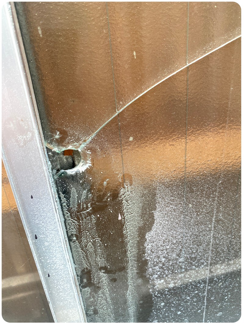 갈아서 구멍을 뚫었습니다. 원래 드릴날 닿으면 날 다시 낼라고 산 건데... 유리에 구멍한번 뚫으니까 더이상 못쓸정도로 몽당연필 수준이 되어 버리더군요... 아까운 내 1500엔... ㅜㅜ 여튼 저기에 구멍이 났으니 저기에 드라이버로 쑤셔서 창문을 열 수 있습니다.