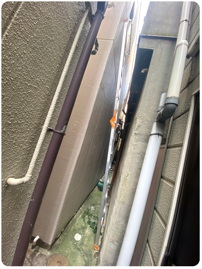 창살 밑으로 배관을 빼고 노출이 된 나무 판자 부분은 막아야 합니다. 그렇지 않으면 비가 계속 들어가서 나무가 썩을 겁니다. 그래서