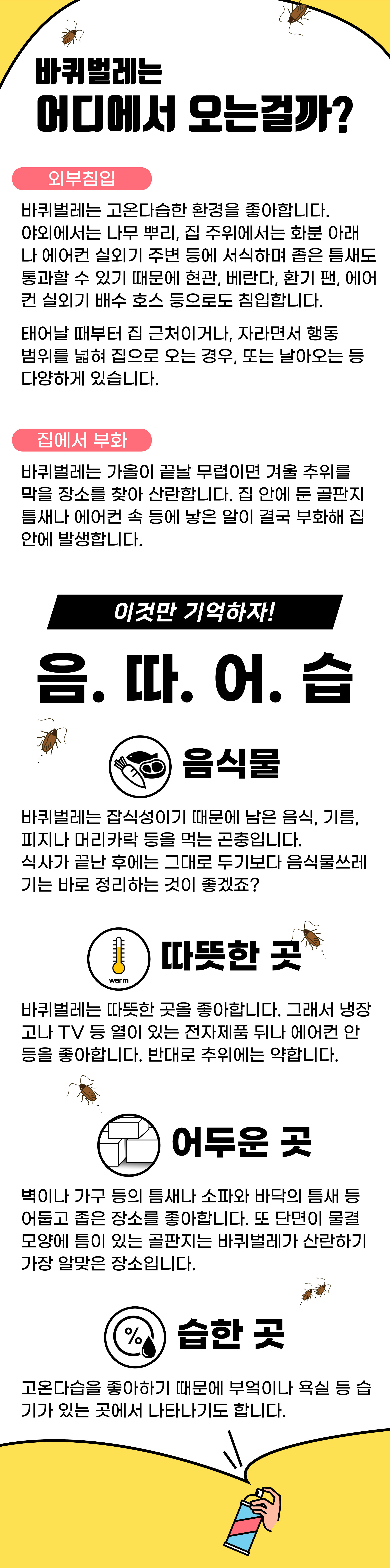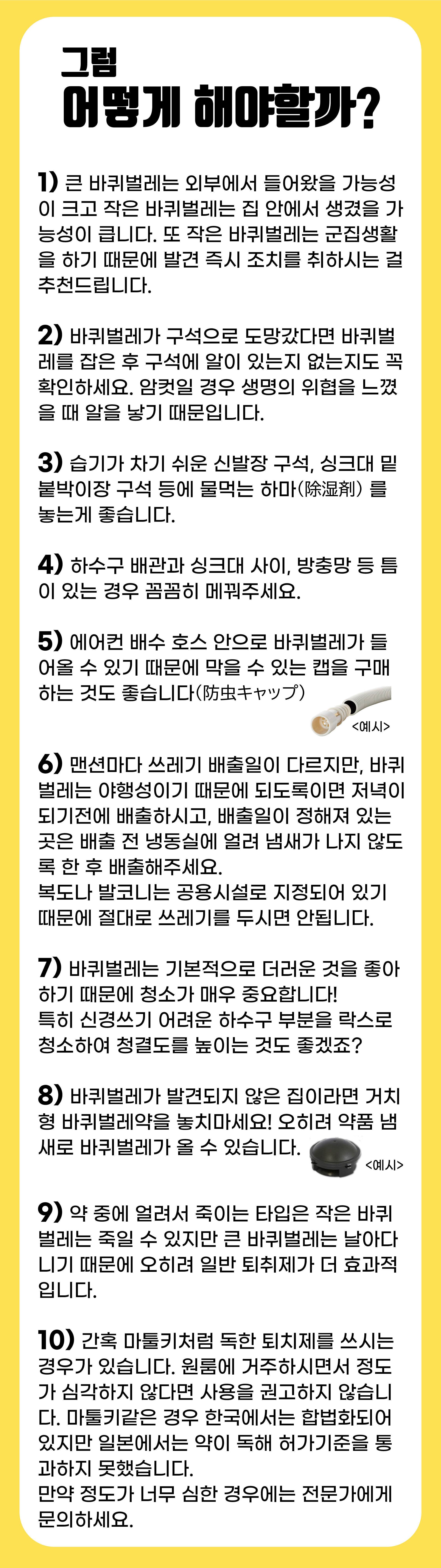 [오인포] "바퀴벌레야 영~영~ 오지마라" 바퀴벌레 예방방법! 작성자임상현부동산|작성시간22.07.04|조회수333 목록 댓글 2 글자크기 작게가 글자크기 크게가 ⠀⠀⠀⠀⠀⠀⠀⠀⠀⠀⠀⠀ 다음검색 현재 게시글 추가 기능 열기 북마크 공유하기 신고 센터로 신고 댓글 댓글 2 댓글쓰기 답글쓰기 댓글 리스트 삭제된 댓글입니다. 답댓글 작성자임상현부동산 작성자 본인 여부 작성자 | 작성시간 22.07.05 저 도쿄에서 봤어요. ! 엄청겄습니다. 신문지로 때려도 안죽더라구요. 댓글 전체보기
