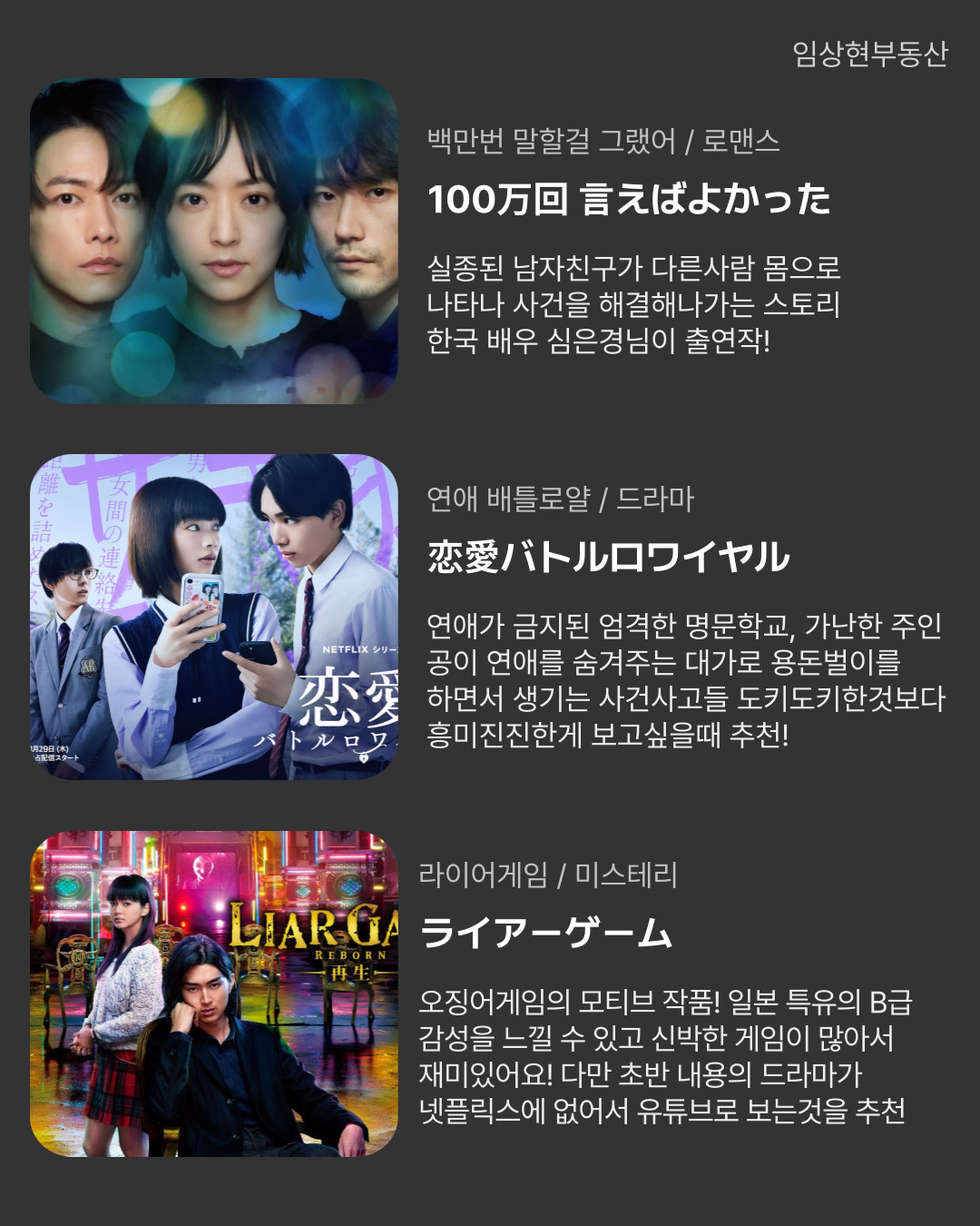 개인적으로 재미있게 봤던 작품들과