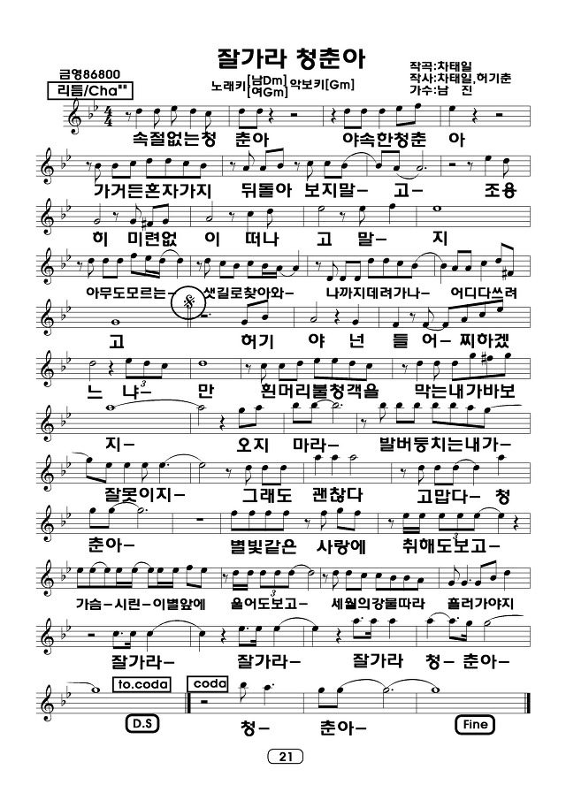 잘가라청춘아/남진-최신곡,대중가요,가요악보책자,악보제작,가요악보,노래교실악보,가요교실악보,노래강사,가요강사,악보만들기,악보그리기,최신가요악보 작성자사랑그리고|작성시간11.12.13|조회수465 목록 댓글 0 글자크기 작게가 글자크기 크게가 잘갈 다음검색 현재 게시글 추가 기능 열기 북마크 공유하기 신고 센터로 신고 댓글 댓글 0 댓글쓰기 답글쓰기 댓글 리스트