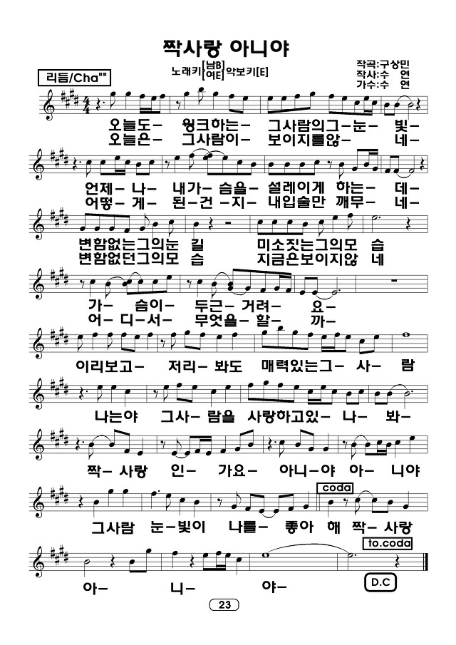 짝사랑아니야/수연-최신곡,대중가요,가요악보책자,악보제작,가요악보,노래교실악보,가요교실악보,노래강사,가요강사,악보만들기,악보그리기,최신가요악보 작성자사랑그리고|작성시간11.12.14|조회수162 목록 댓글 0 글자크기 작게가 글자크기 크게가 야 다음검색 현재 게시글 추가 기능 열기 북마크 공유하기 신고 센터로 신고 댓글 댓글 0 댓글쓰기 답글쓰기 댓글 리스트