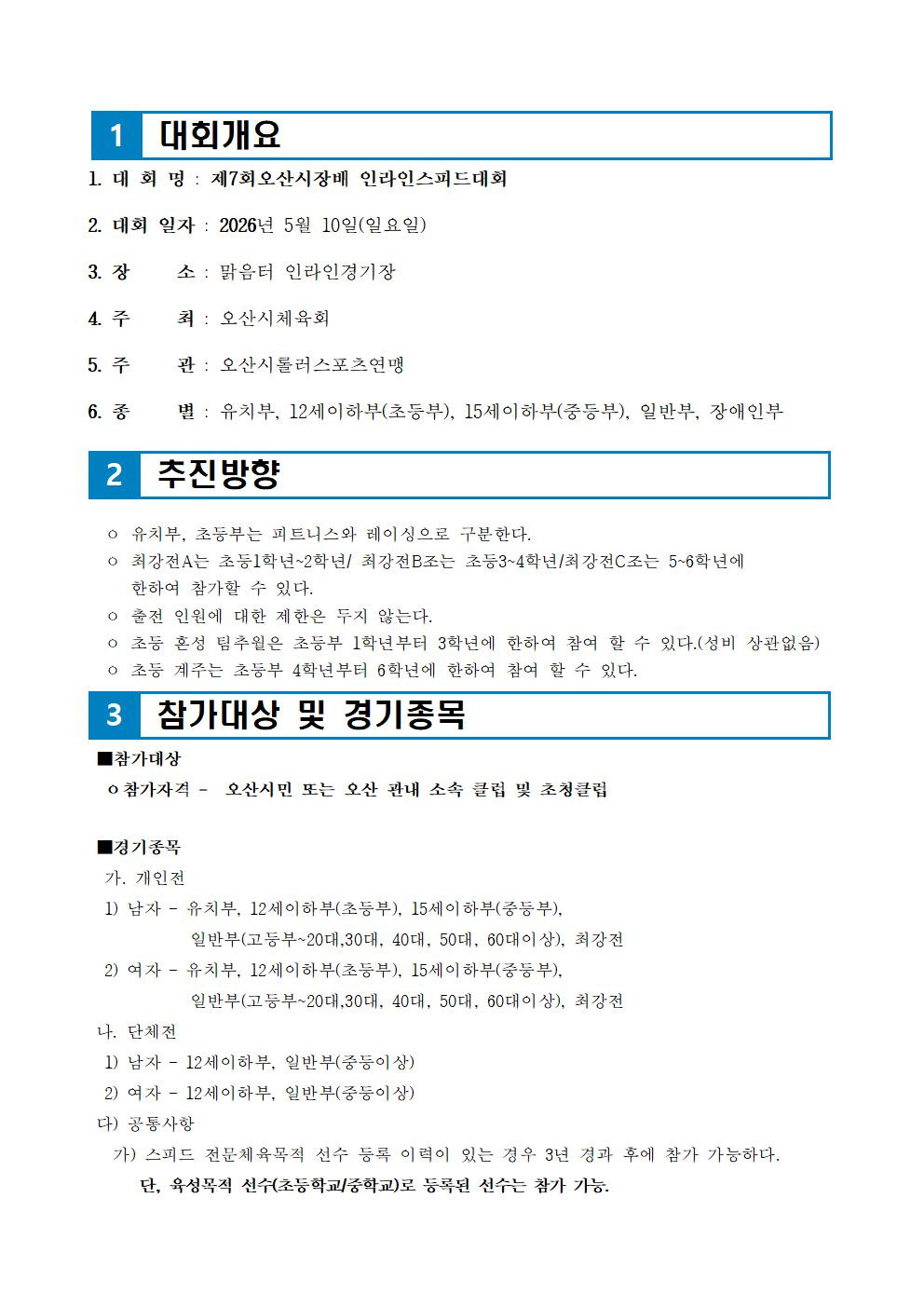 다. 주최/주관: 오산시롤러스포츠연맹/ 오산시체육회