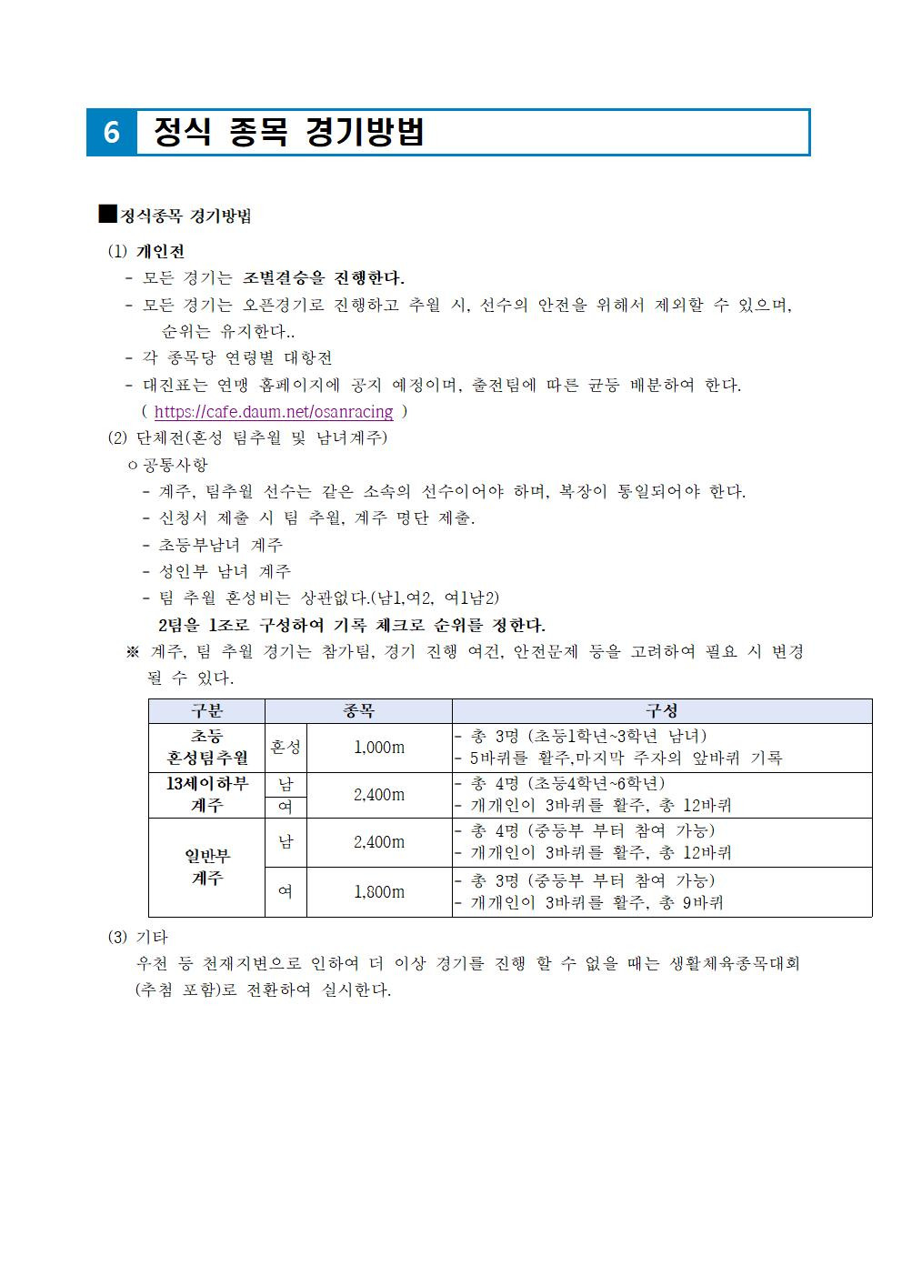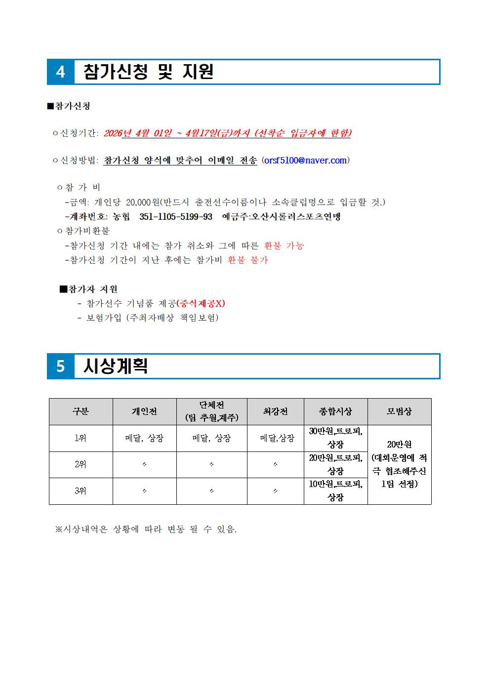바. 참가 신청 대상 및 방법: 오산시민 또는 오산 관내 소속 클럽 및 연맹 초청클럽 / 첨부 양식