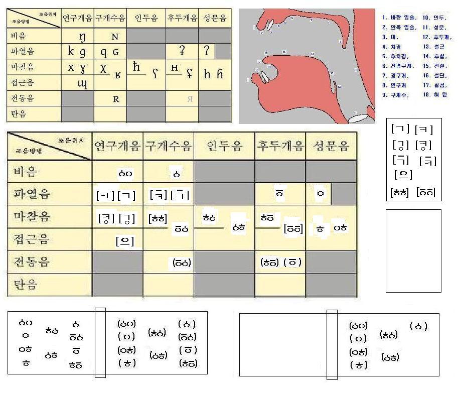 대체적인 후음의 분류는 14종으로 볼 수도 있습니다.