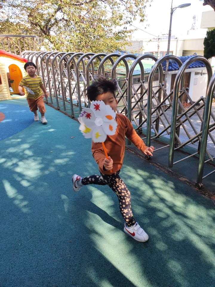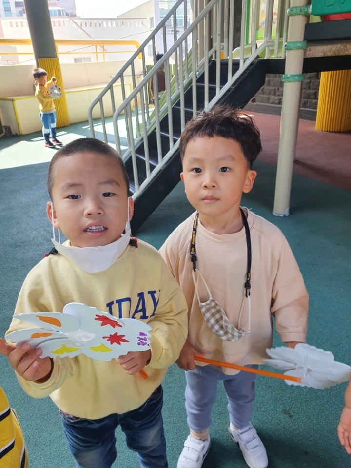 가을바람을 느껴보아요~^^ 작성자지혜반선생님|작성시간20.10.19|조회수240 목록 댓글 0 글자크기 작게가 글자크기 크게가 지혜반 친구들과 함께 실외놀이를 하면서 가을변화에 대해 알아보기도하고친구들이 직접 만든 바람깨비로 놀이해보며가을바람을 느껴보기도 해 보았답니다.^^♡ 다음검색 현재 게시글 추가 기능 열기 북마크 공유하기 신고 센터로 신고 댓글 댓글 0 댓글쓰기 답글쓰기 댓글 리스트