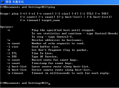 위에 커서가 깜박 깜박하는 자리에 ping를 치면