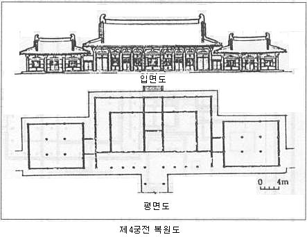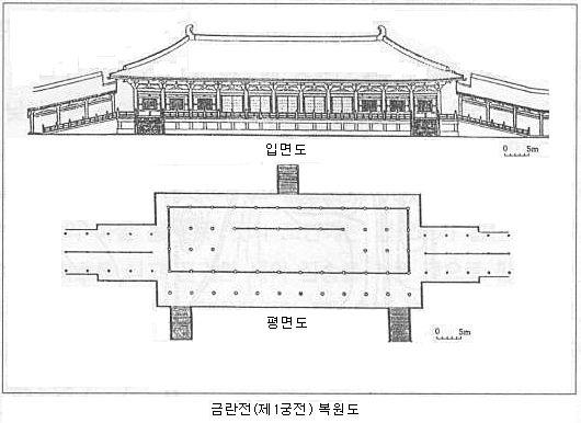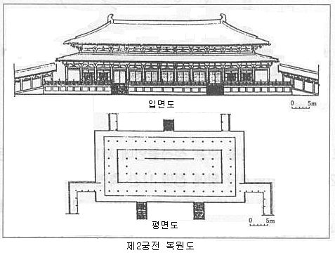 상경용천부 궁성의 규모와 배치상태, 건물 형식 등은 고구려의 궁성인 안학궁의 그것과 닮았다.