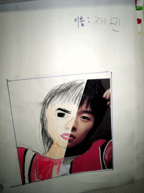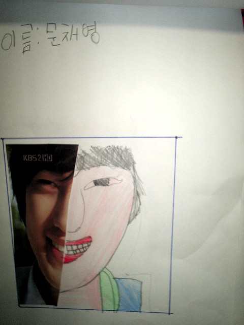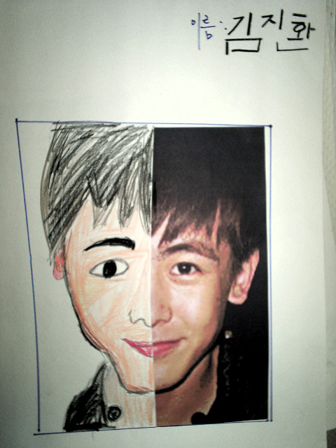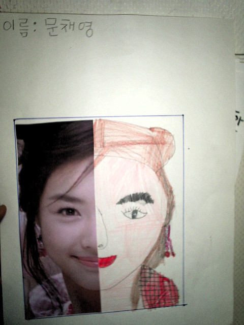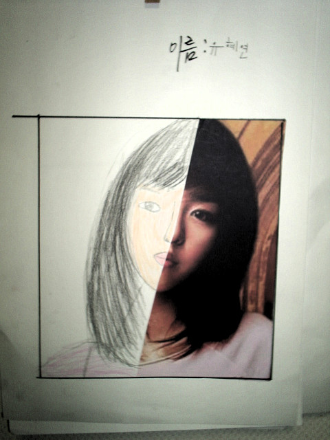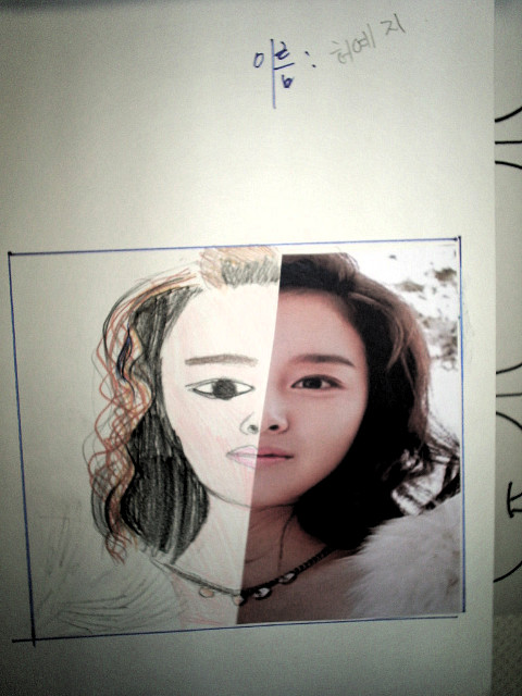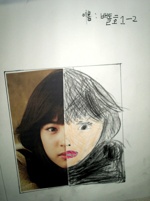 얼굴의 좌우대칭과 그리는 방법, 눈코입의 표현법 등을 간단히 배우고 난 뒤에 바로 스케치가 들어갔습니다
