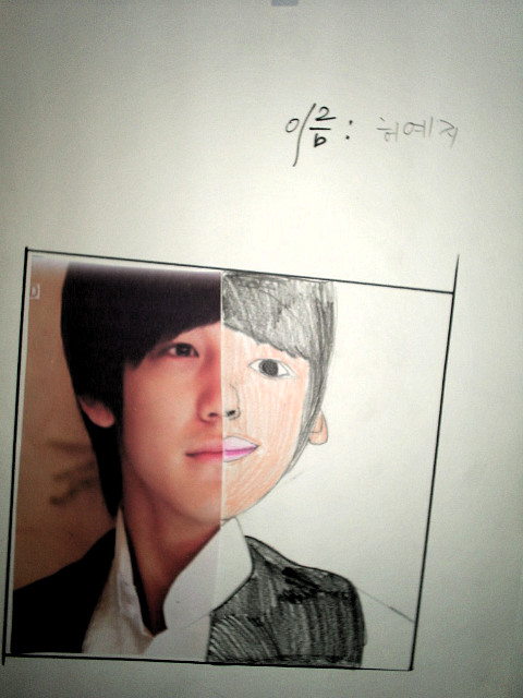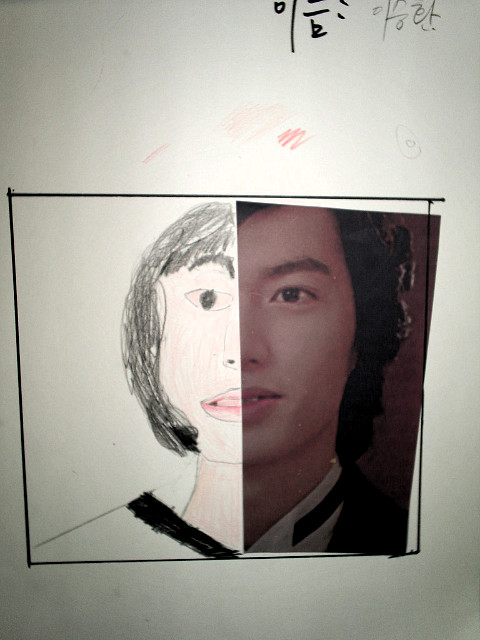 얼굴의 반쪽만을 주어주고 나머지 반쪽을 연상하여 그려보는데 상상이 아닌 반대되는 얼굴의 이미지를 관찰하여 똑같이 그려보기로 합니다
