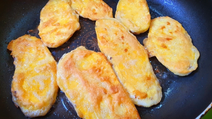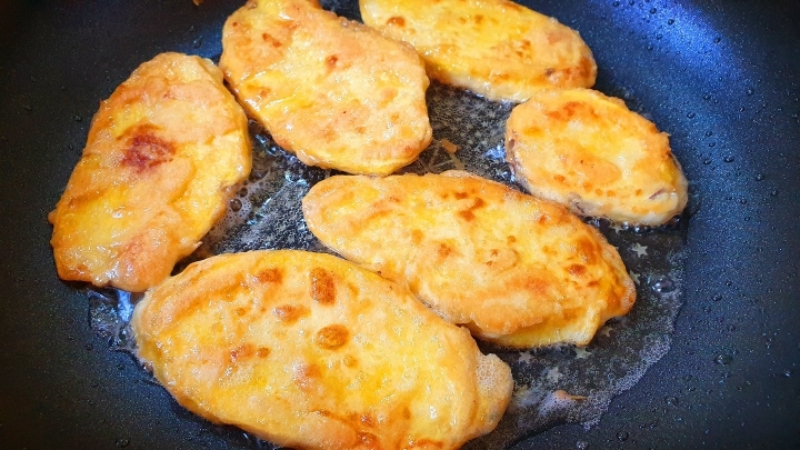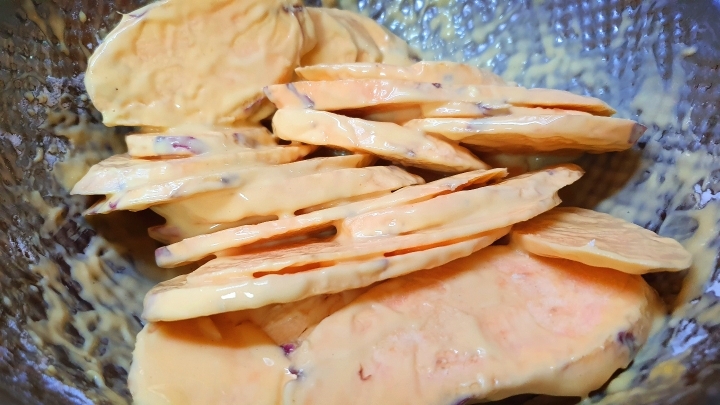 고구마에 담갔다 부치는 건가요? -