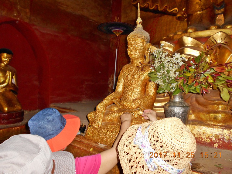 감옥 생활의 심경을 재현해 놓았습니다. 사원의 구조는 사원 정면의 부처를 중심으로 양쪽에 한 분씩 있고