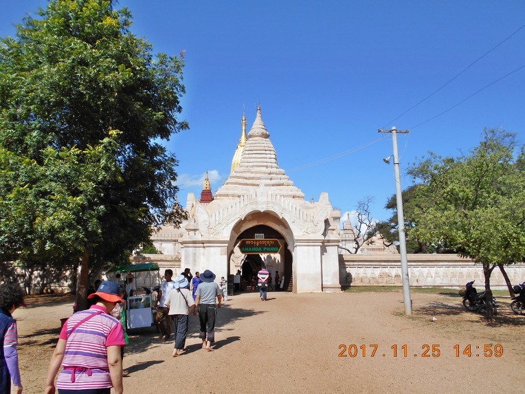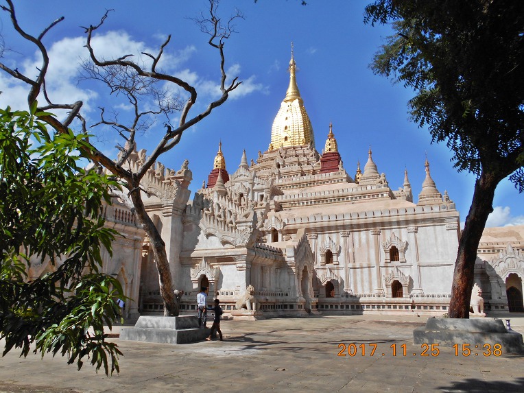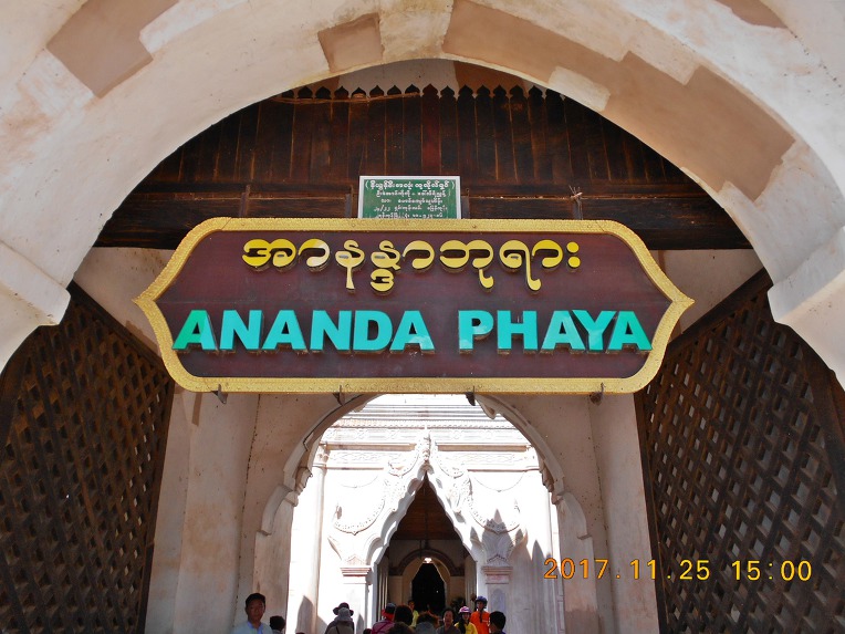 555 평방 미터로, 도시 동쪽외곽에 자리잡고 있는 아난다 사원은 1091년, Anawrahta(1044~1077)왕대 건립을