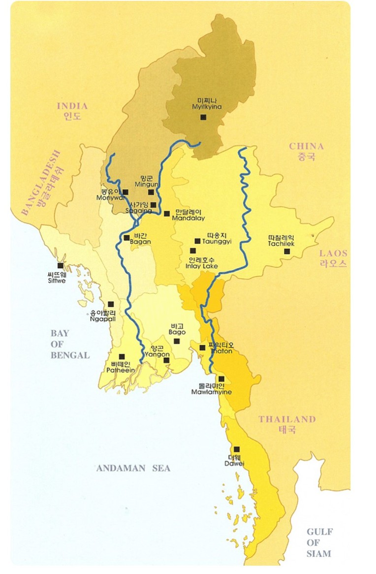 미얀마는 아시아 서남부에 있는 연방국으로 국민의 9/10가 불교도이며 공용어는 미얀마어 입니다. 1885년부터