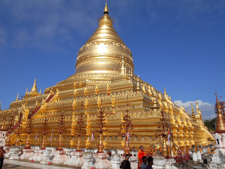 파고다는 미얀마 파고다들의 전형적인 모델이 되는 탑으로 상륜의 티 장식에는 998개의 보석으로 장식되어