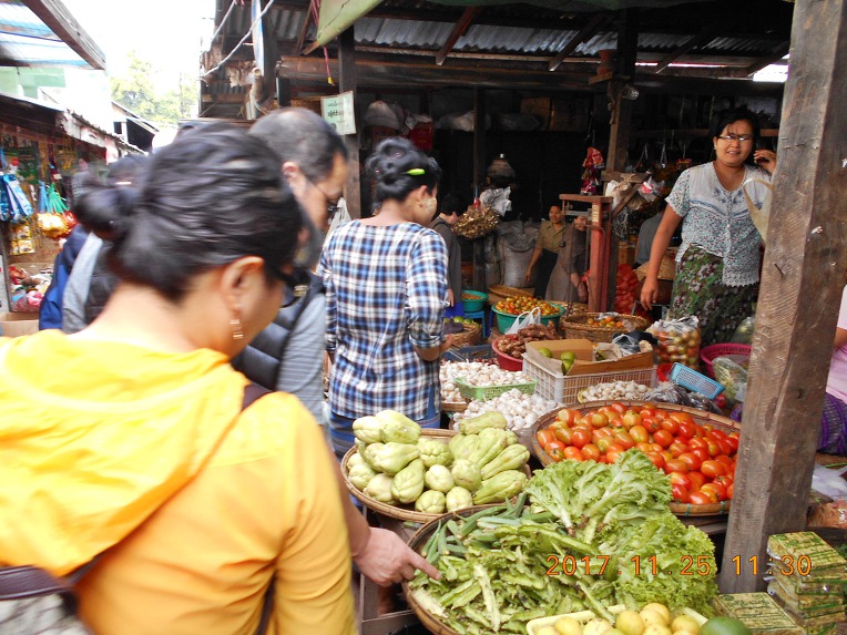 먼저 전용버스로 첫 일정인 냥우 재래시장으로 이동합니다.냥우 시장은 바간에서 가장 큰 재래시장으로