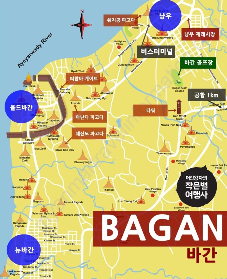 바간은 유네스코 지정 세계문화유산 보호 지역으로 외국인은 바간에 들어갈 때 지역 입장료를 내야 합니다.