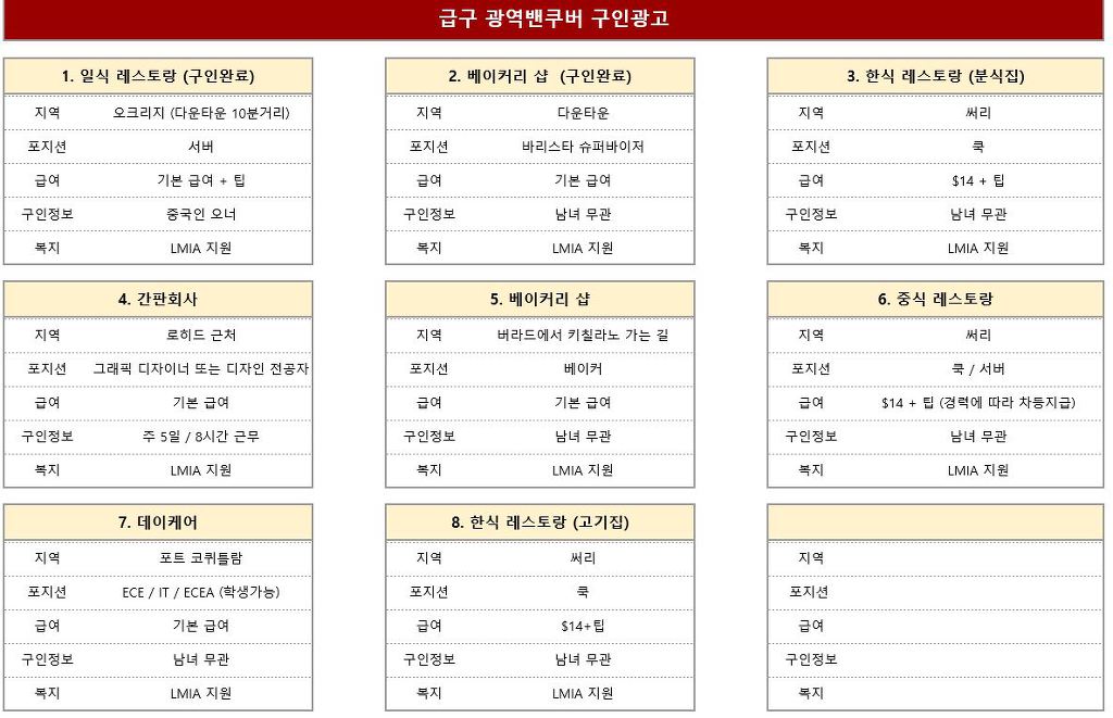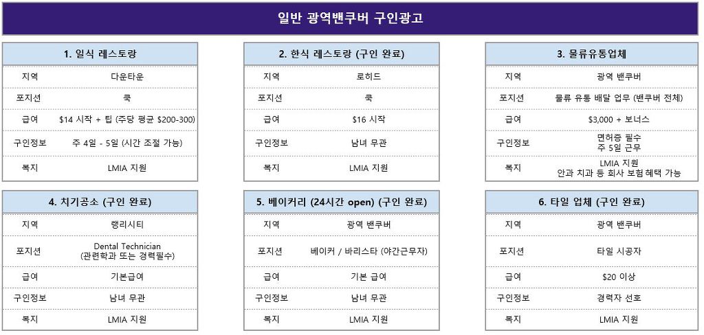 **** 광역 밴쿠버 급구 & 일반 구인광고 업체 안내드립니다 ****