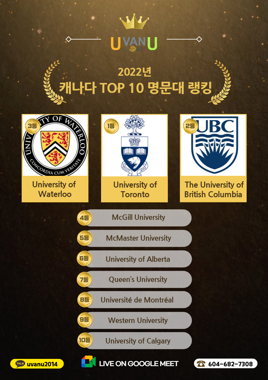 캐나다에서 손에 꼽는 명문대 입학,