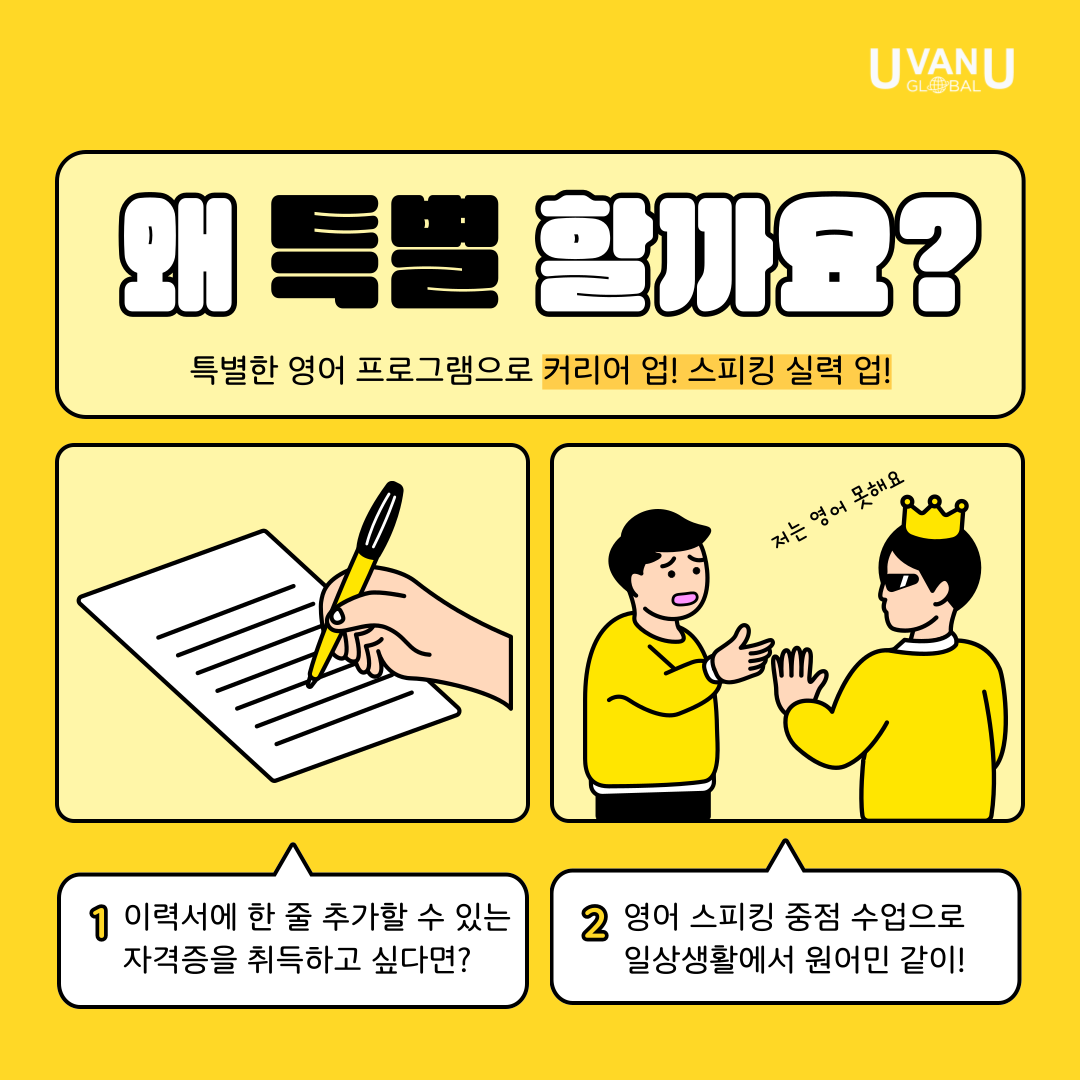그런 분들을 위한 프로그램이 바로 스피킹에 중점을 둔 파워스피킹, 통번역, 테솔 프로그램 입니다!