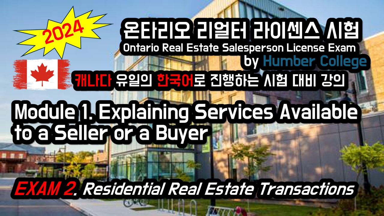 2024년 온타리오 리얼터 시험 한국어 강의, Exam 2 - Module 1. Explaining Services Available