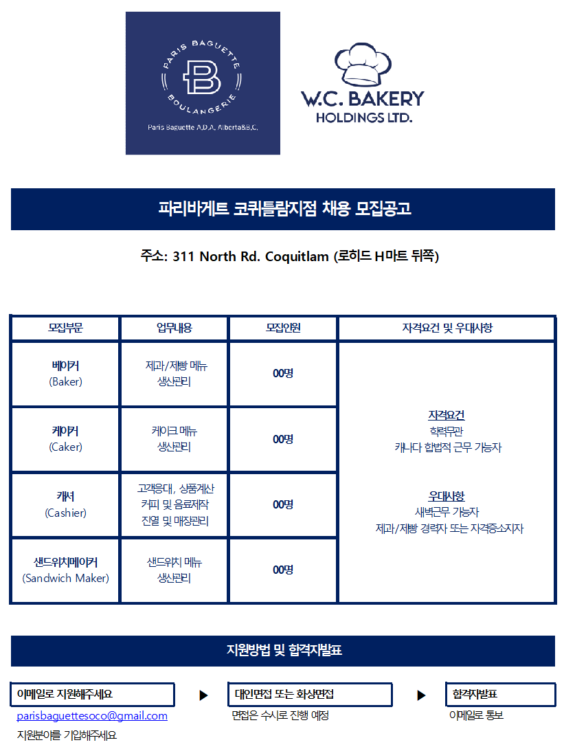 [스크랩] [유료광고]파리바게트 코퀴틀람 지점 추가채용 공고 - Cake Decorator & Baker 작성자UvanU 광고팀|작성시간24.12.23|조회수292 목록 댓글 0 글자크기 작게가 글자크기 크게가 이력서 접수: parisbaguettesoco@gmail.com *** Cake Decorator 우선순위로 구인합니다 *** 다음검색 스크랩 원문 : [UvanU] 우리는 벤쿠버 유학생 현재 게시글 추가 기능 열기 북마크 공유하기 신고 센터로 신고 댓글 댓글 0 댓글쓰기 답글쓰기 댓글 리스트