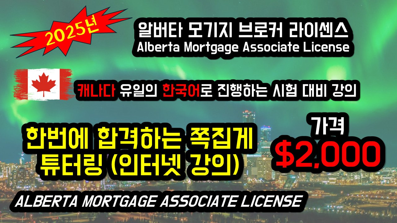 지금 바로 연락하세요! 한국어로 진행되는 유일한 알버타 모기지브로커( Alberta Mortgage Associate License) 시험 대비 튜터링으로 목표 합격을 향한 첫걸음을 시작하십시오.