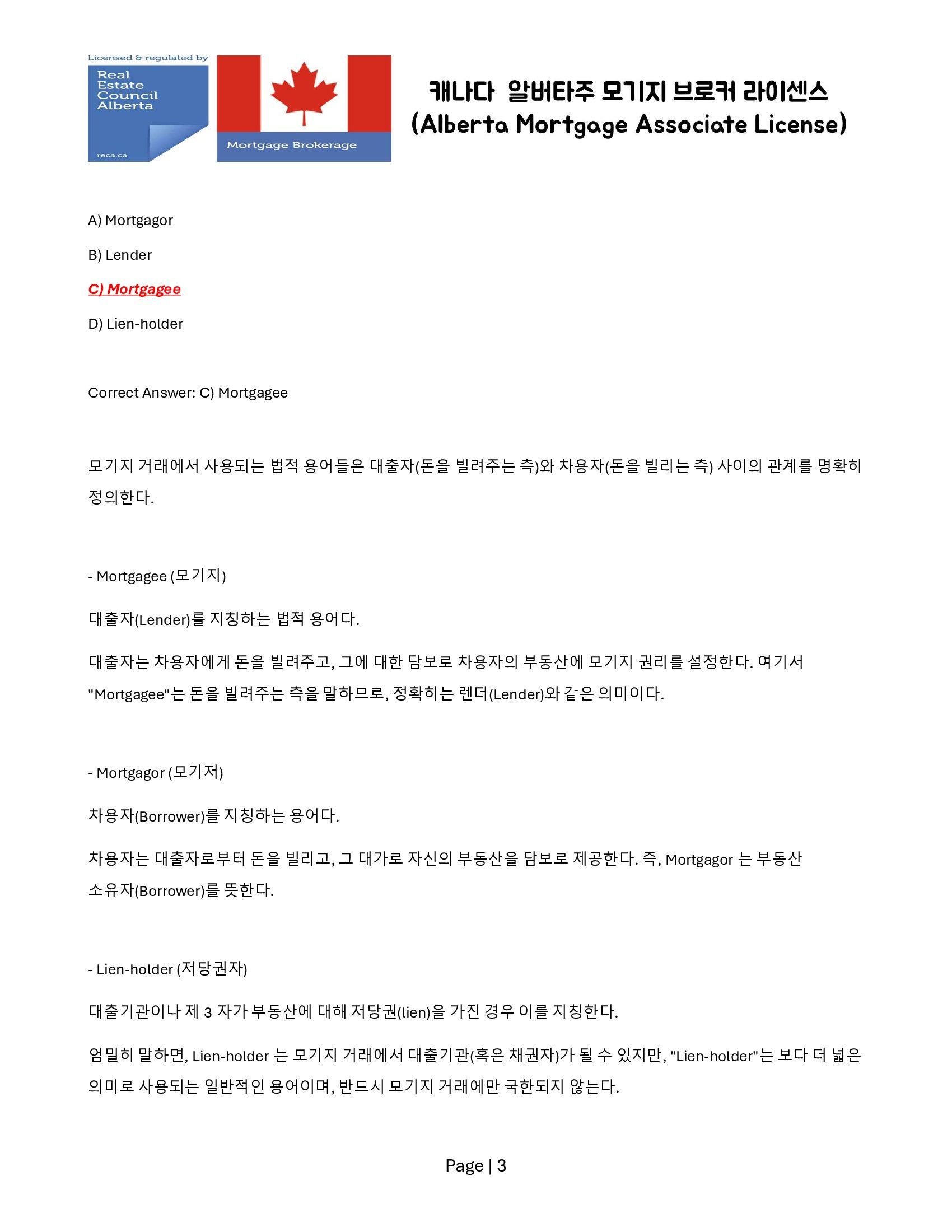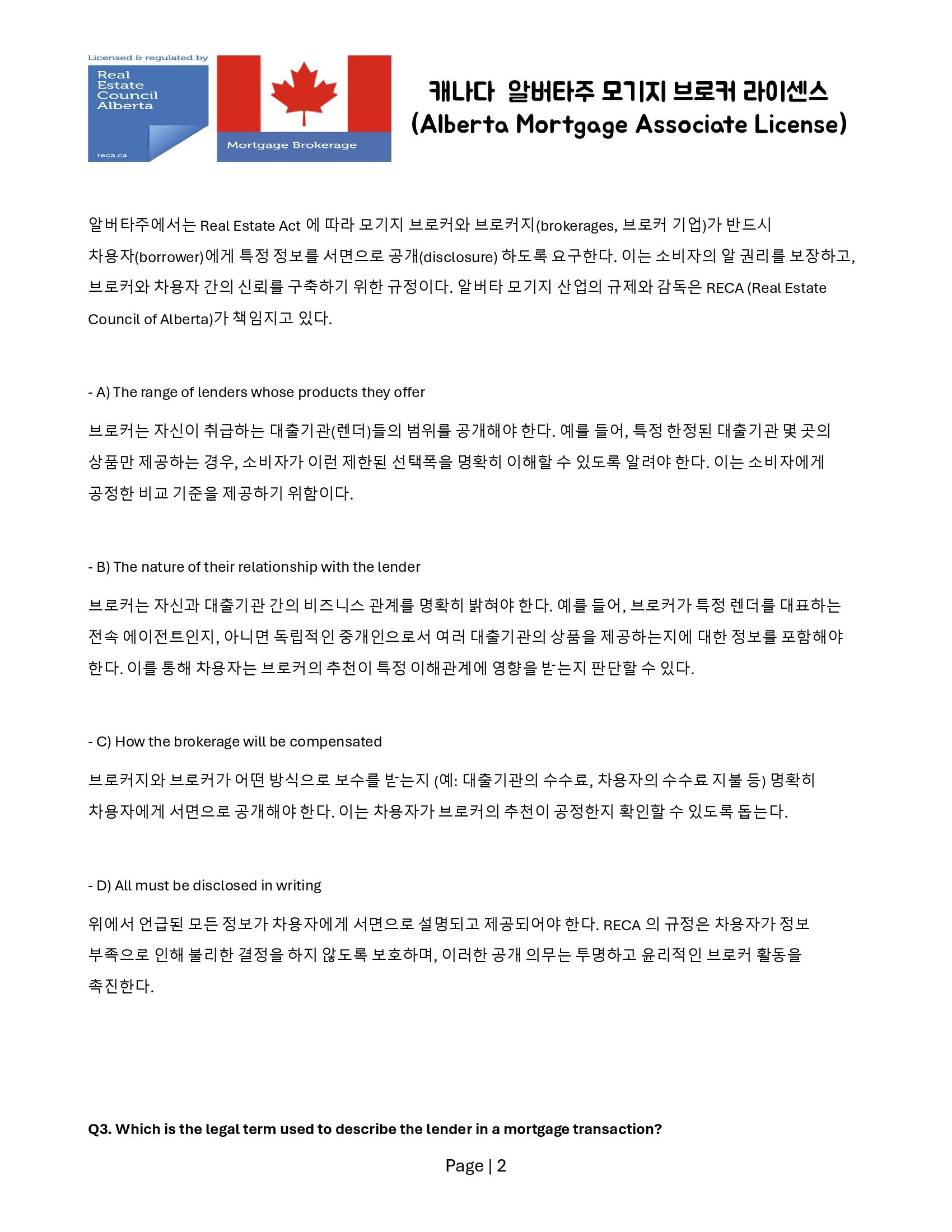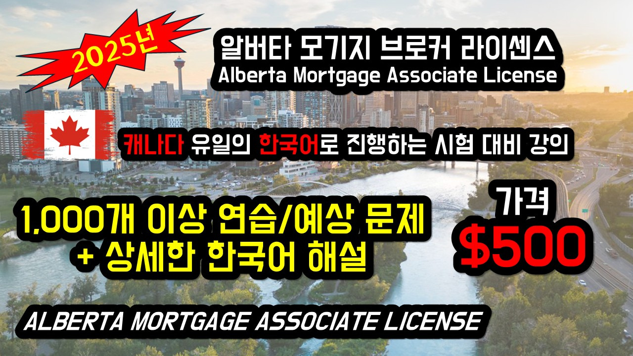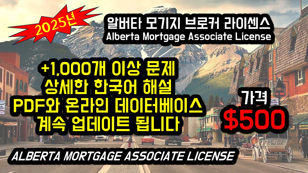 [2025년 캐나다 알버타주 모기지 브로커 라이센스 (Alberta Mortgage Associate License) 시험 대비 문제은행 + 해설 – 한국어 전문 튜터링]