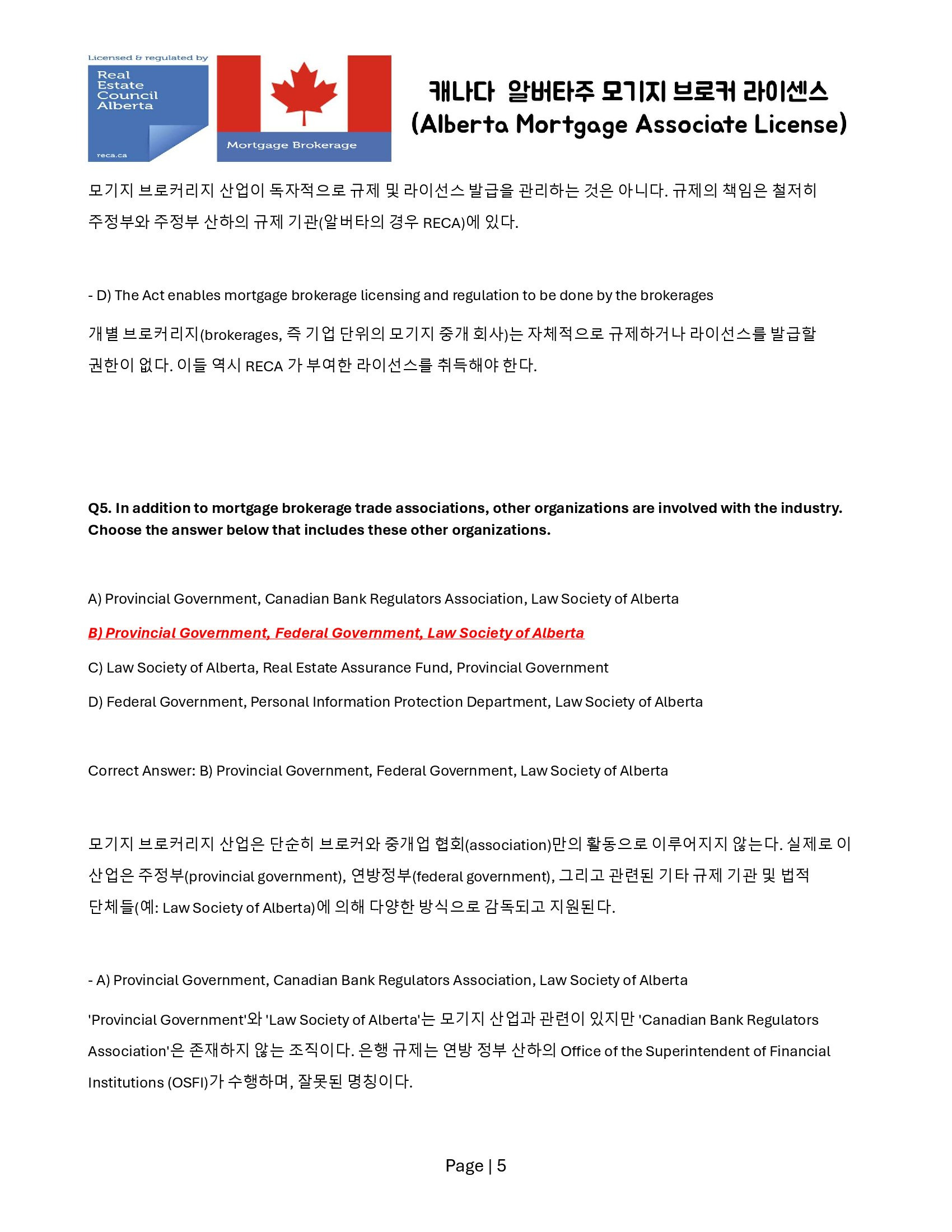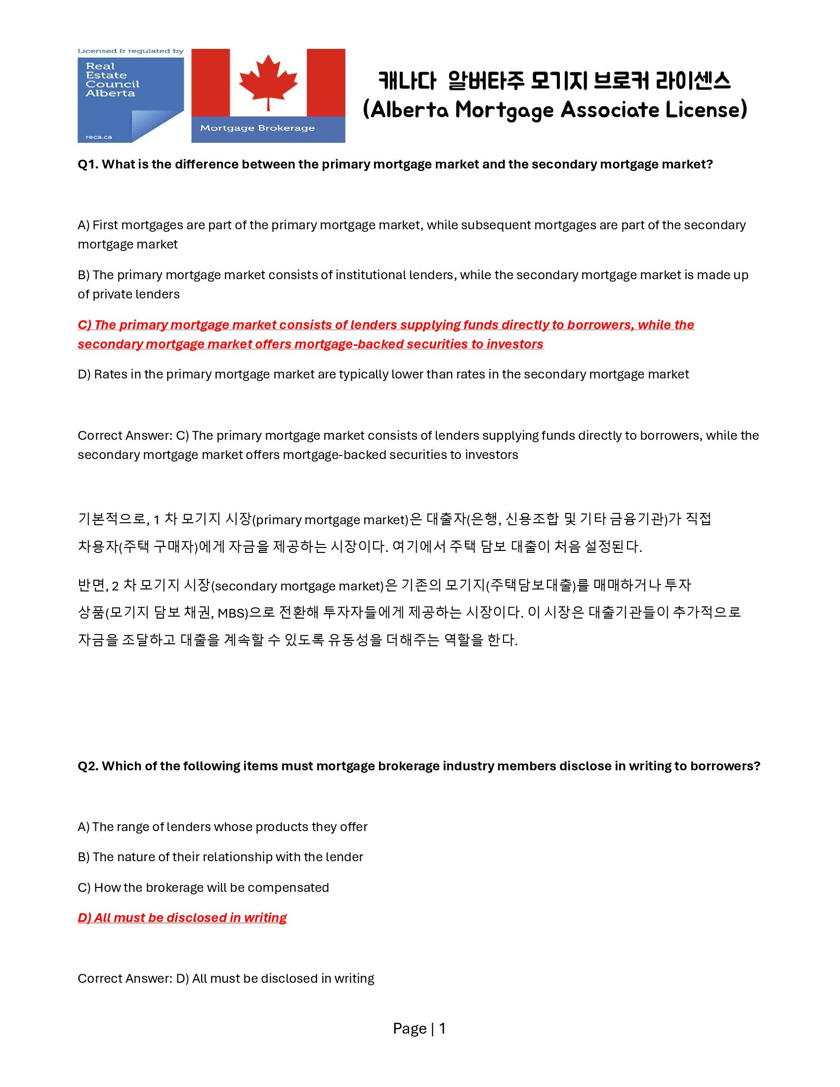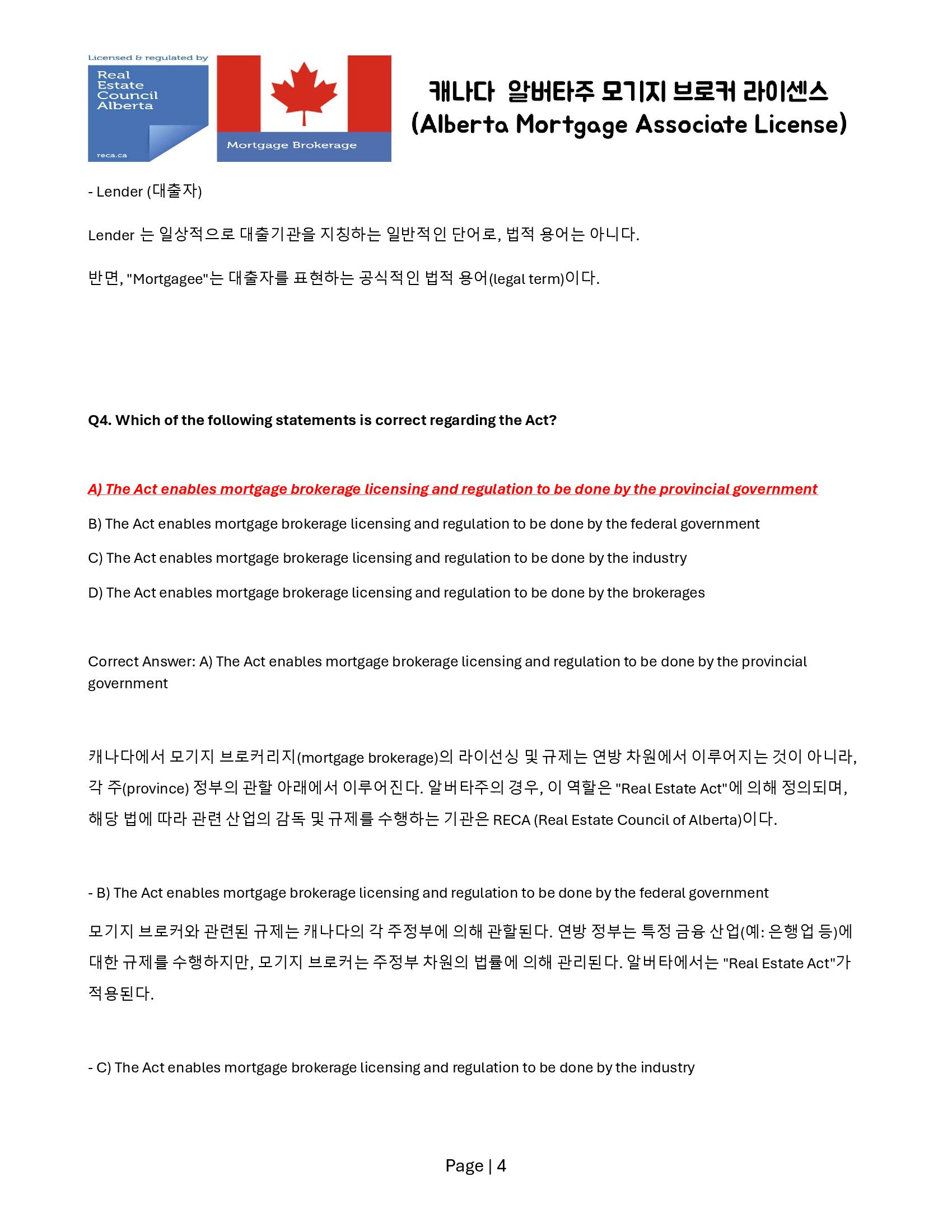 [2025년 캐나다 알버타주 모기지 브로커 라이센스 (Alberta Mortgage Associate License) 시험 대비 문제은행 + 해설 – 한국어 전문 튜터링]