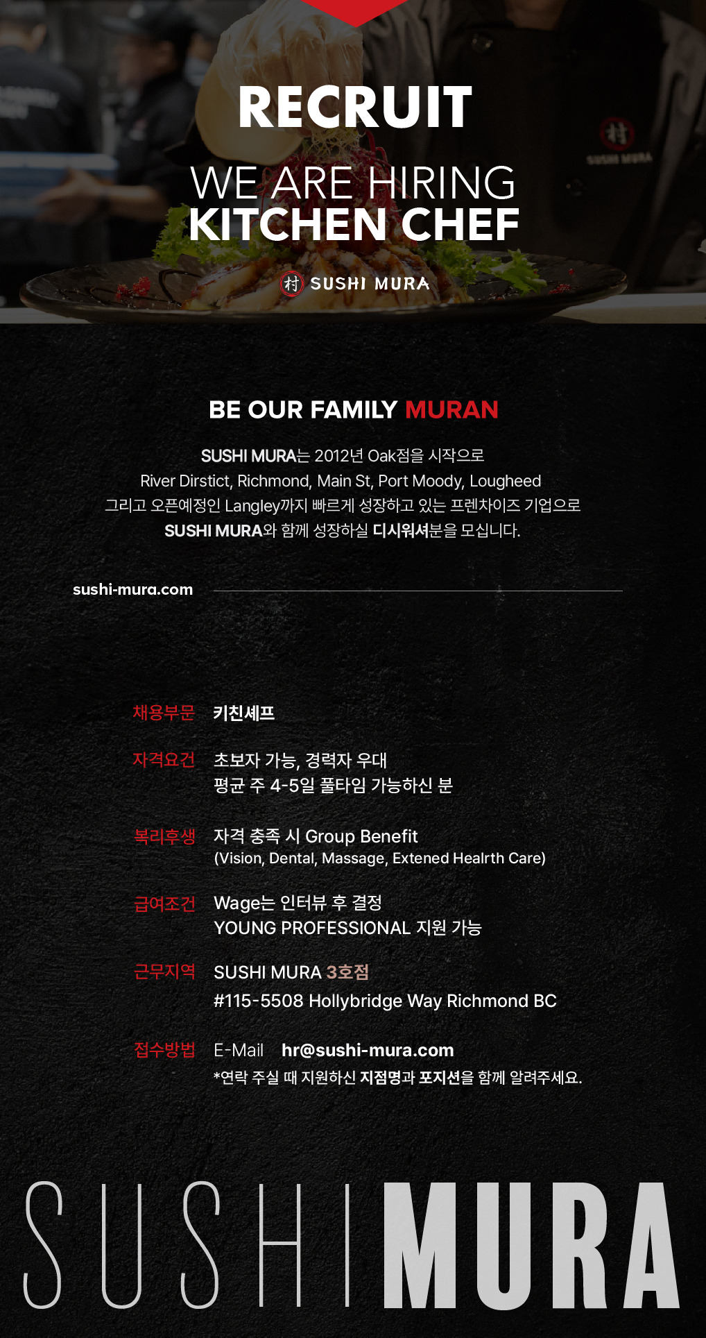 스시무라 리치몬드 주방 쿡 구합니다! (경력무관) 작성자스시햄버거|작성시간26.02.12|조회수42 목록 댓글 0 글자크기 작게가 글자크기 크게가 다음검색 현재 게시글 추가 기능 열기 북마크 공유하기 신고 센터로 신고 댓글 댓글 0 댓글쓰기 답글쓰기 댓글 리스트