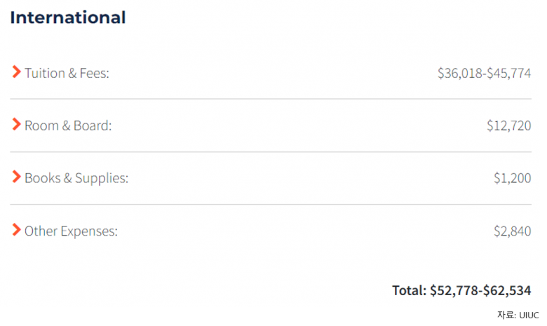 2022-2023 기준 UIUC의 등록금 비용은 아래와 같습니다.