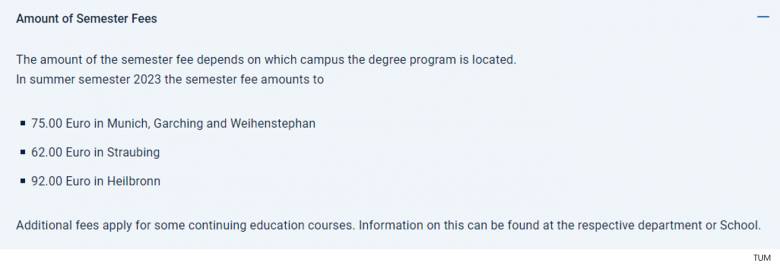 뮌헨 공과대학교의 학기 비용은