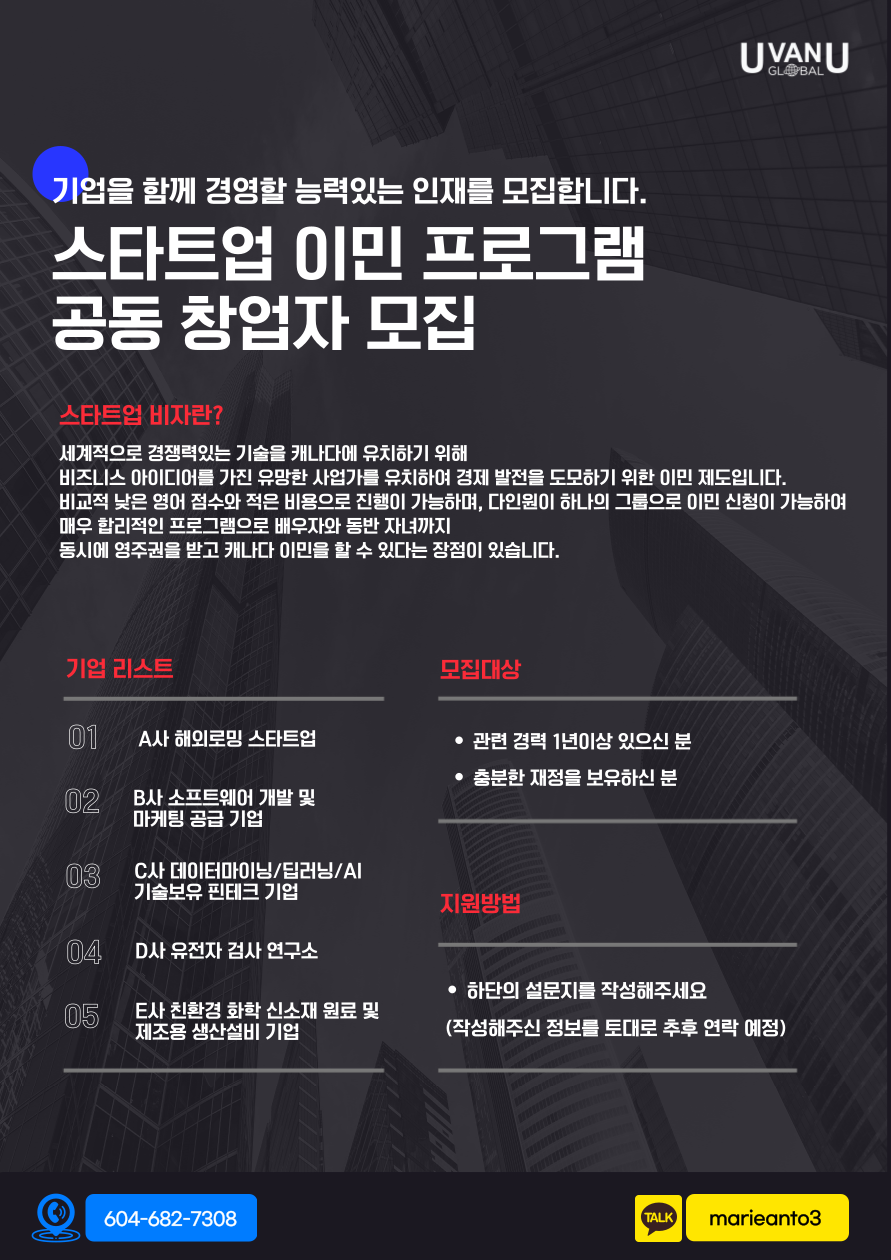 스타트업 비자 프로그램은 혁신적인 스타트업 기업과 인재를 유치하기 위한 캐나다 연방 정부의 영주권 프로그램으로