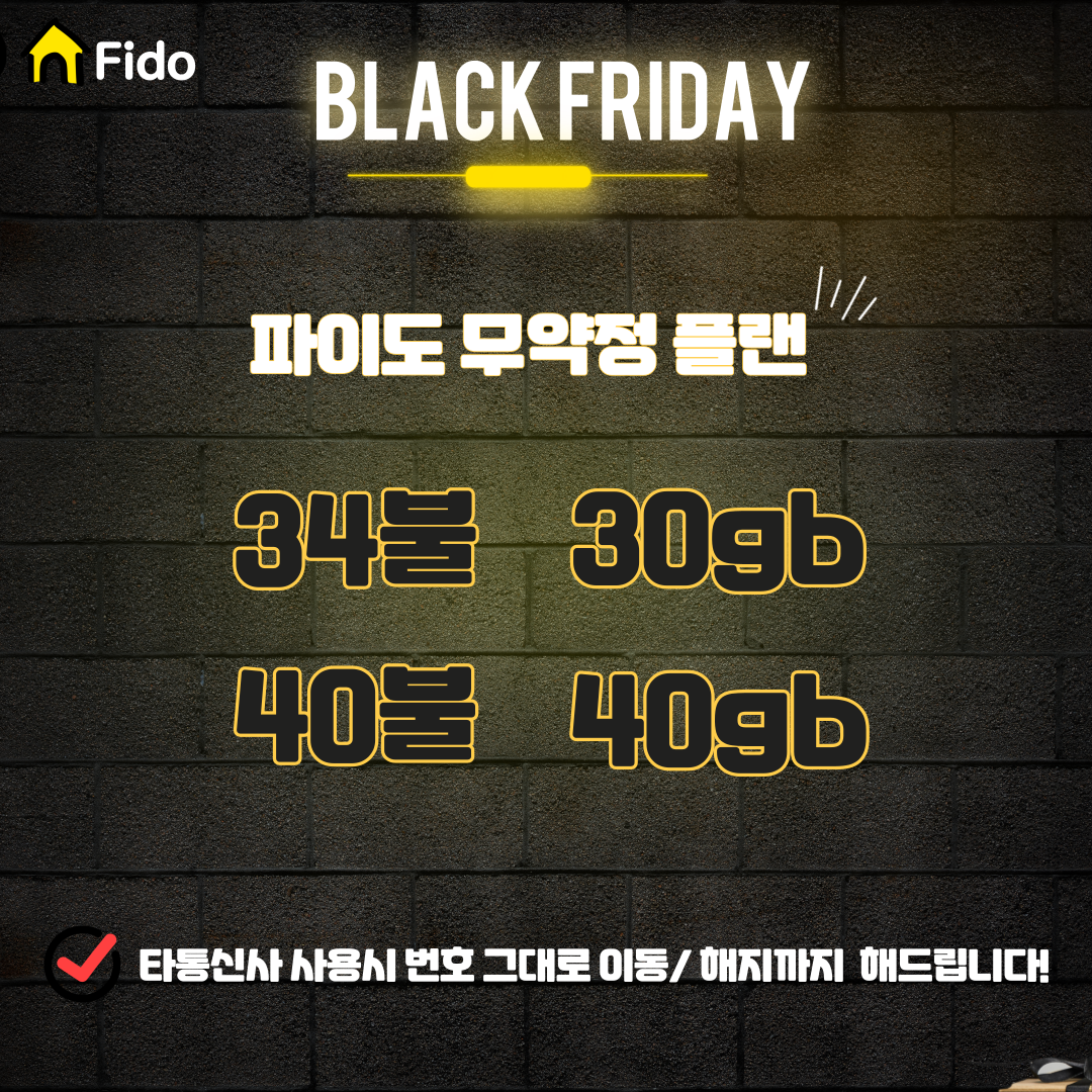 [유료광고][파이도 블랙 프라이데이 딜] 34불 30기가 40불 40기가 무약정 플랜 프로모션!! (끝나기전 서두르세요)