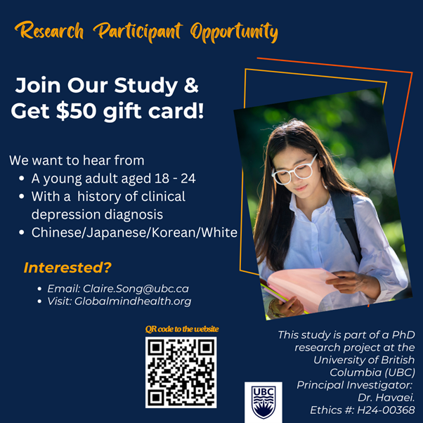 Join Our Study on Cultural Influences and Depression, conducted by researchers from the University of British Columbia.