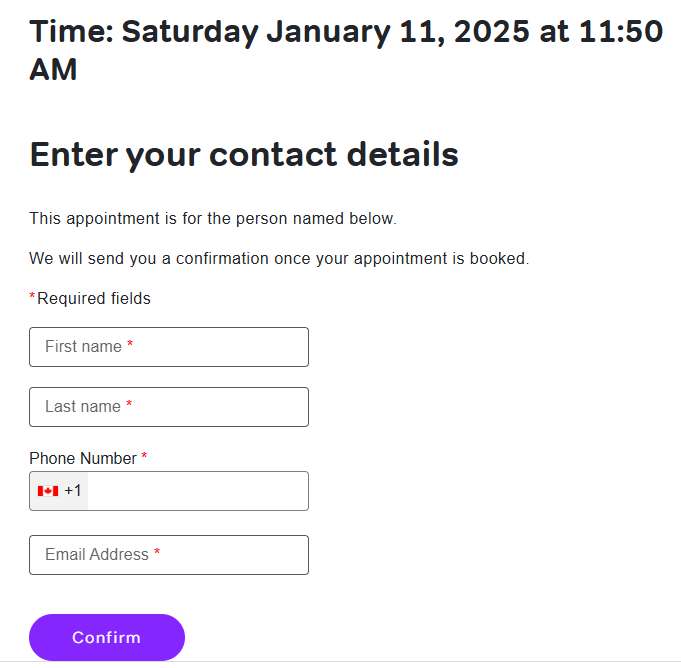 이름, 성, 전화번호, 이메일 주소를 기입하면