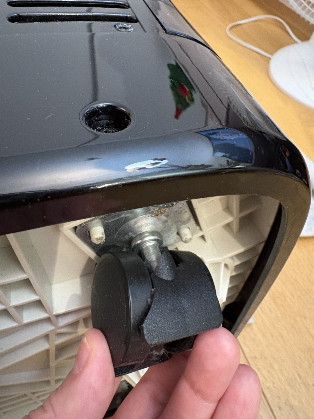 - 배달 받았을 당시부터 뒷바퀴가 부러져있었는데 사용시 문제 없었음. 단지 바퀴 굴려서 옮길때 조금 기우는거 말고는 문제 딱히 없었어요.