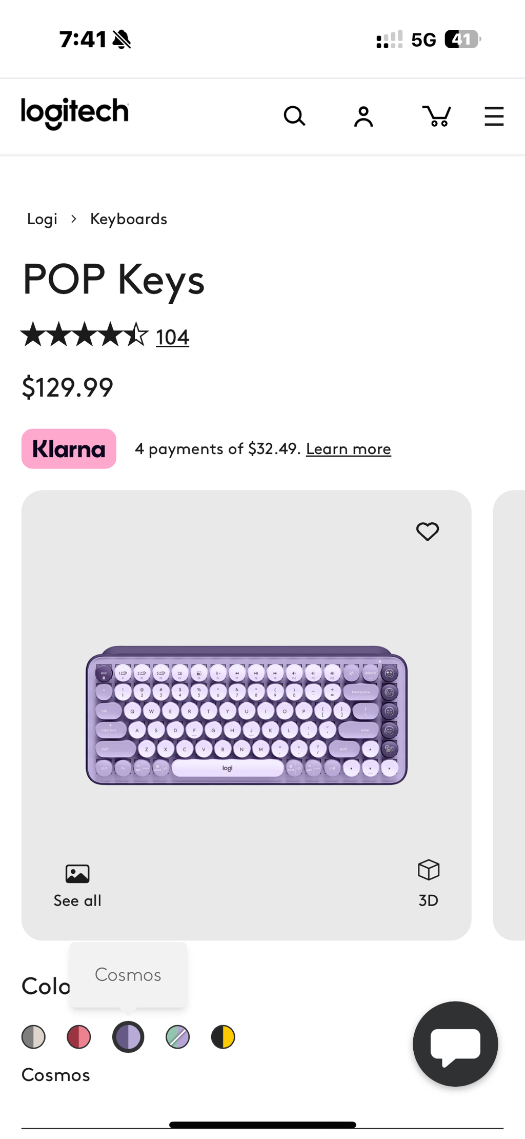 로지텍 블루투스 키보드 보라색 $85