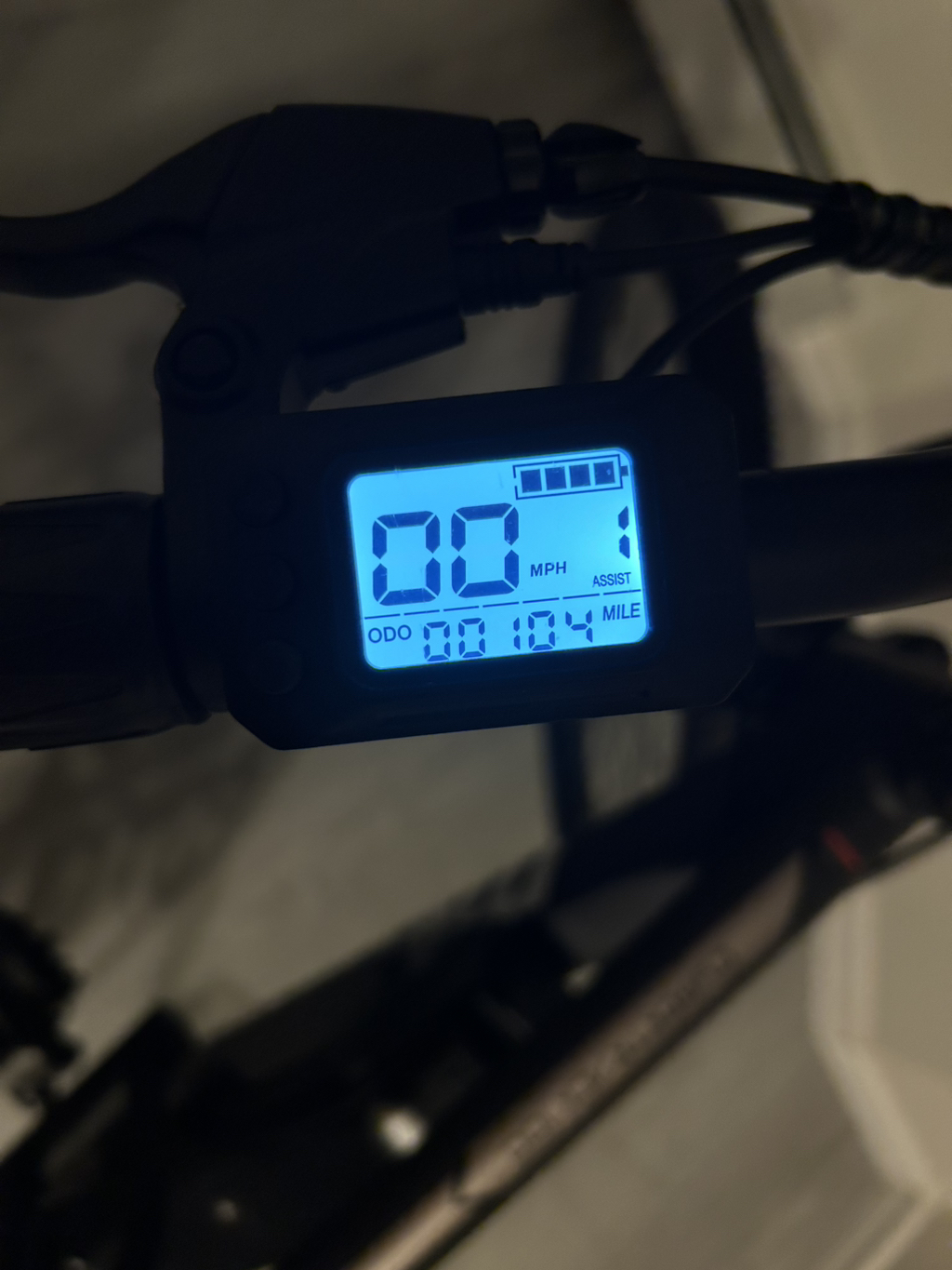 이 자전거는 작년 여름부터 사용된 모델이며, 현재 **총 사용 거리는 104마일(약 167km)** 밖에 안된 잘 관리된 전기 자전거 입니다.