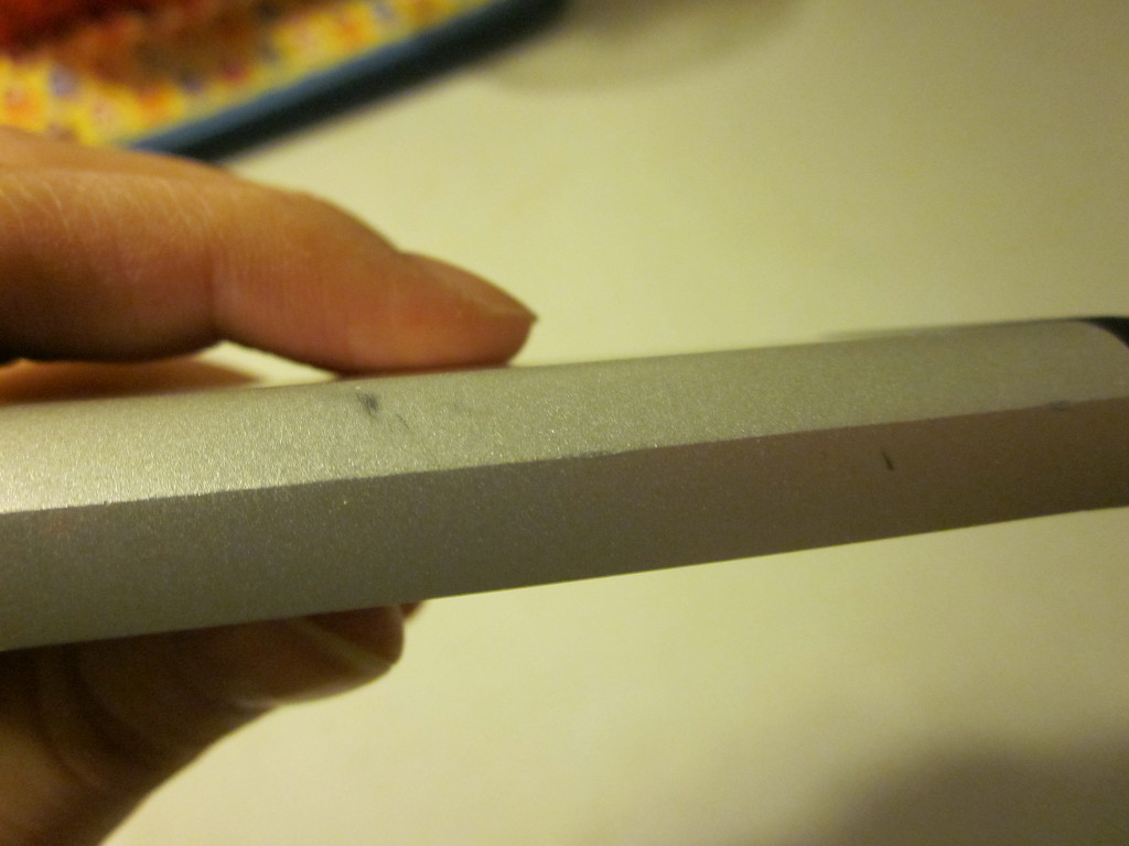뒷면에 있는 기스를 가까이서 찍은 사진이에요.