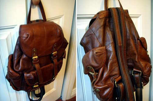3. 갈색 소가죽 백팩