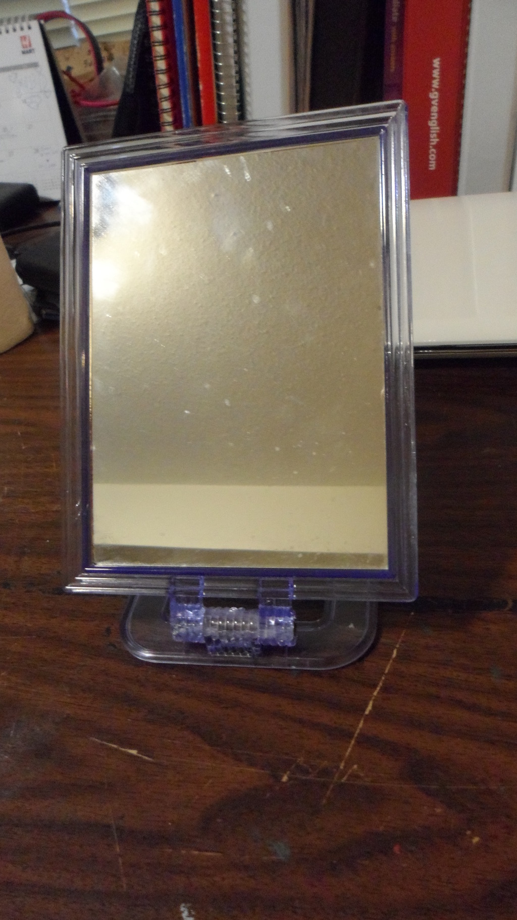 책상에 놓기 좋은 거울이에요. 화장할 때 편해용:) 사진에선 좀 더러운데 깨끗이 닦아 드릴거예요.