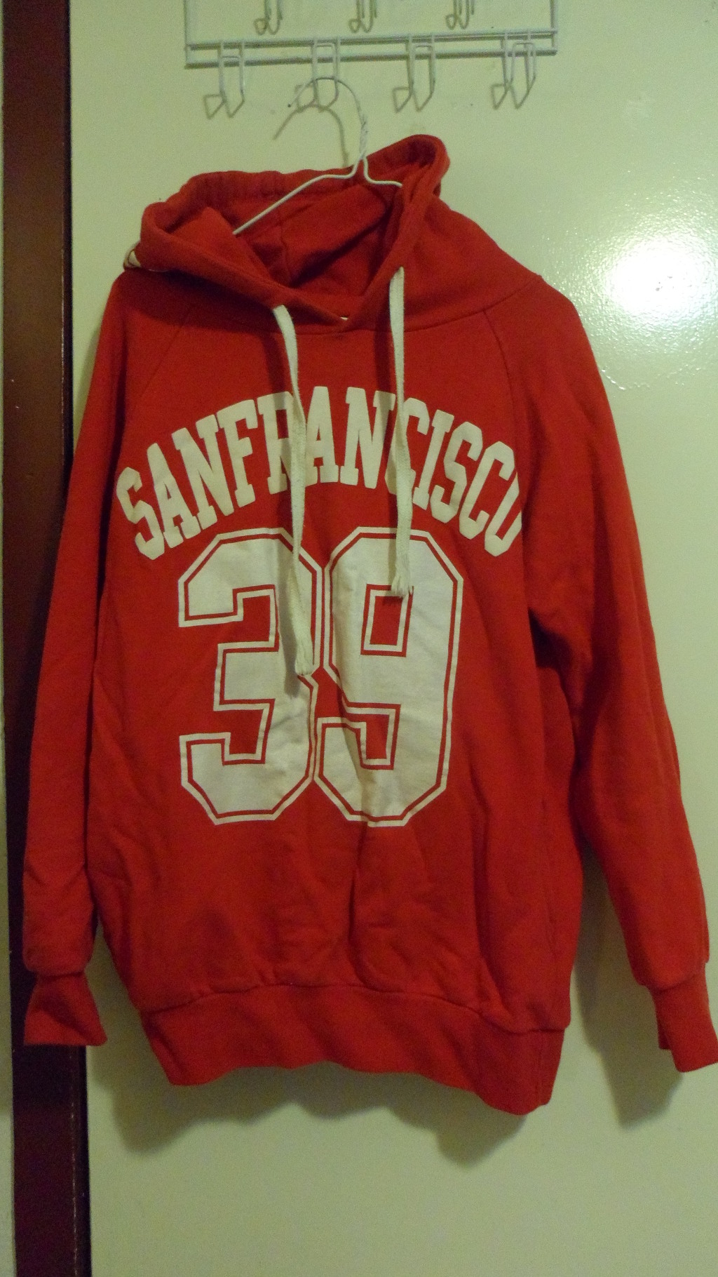 무난한 빨간 후드티에요. 패딩이나 야상 안에 입으시면 따뜻합니다.